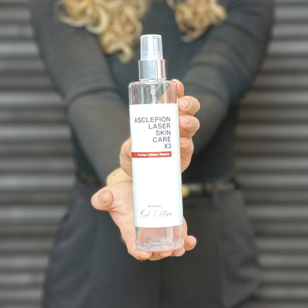 Sprayflacon met verzorgende laser skincare, te gebruiken met de Asclepion MeDioStar en AlexStar diode lasers. Bij gebruik is een Hygienic Cap vereist!